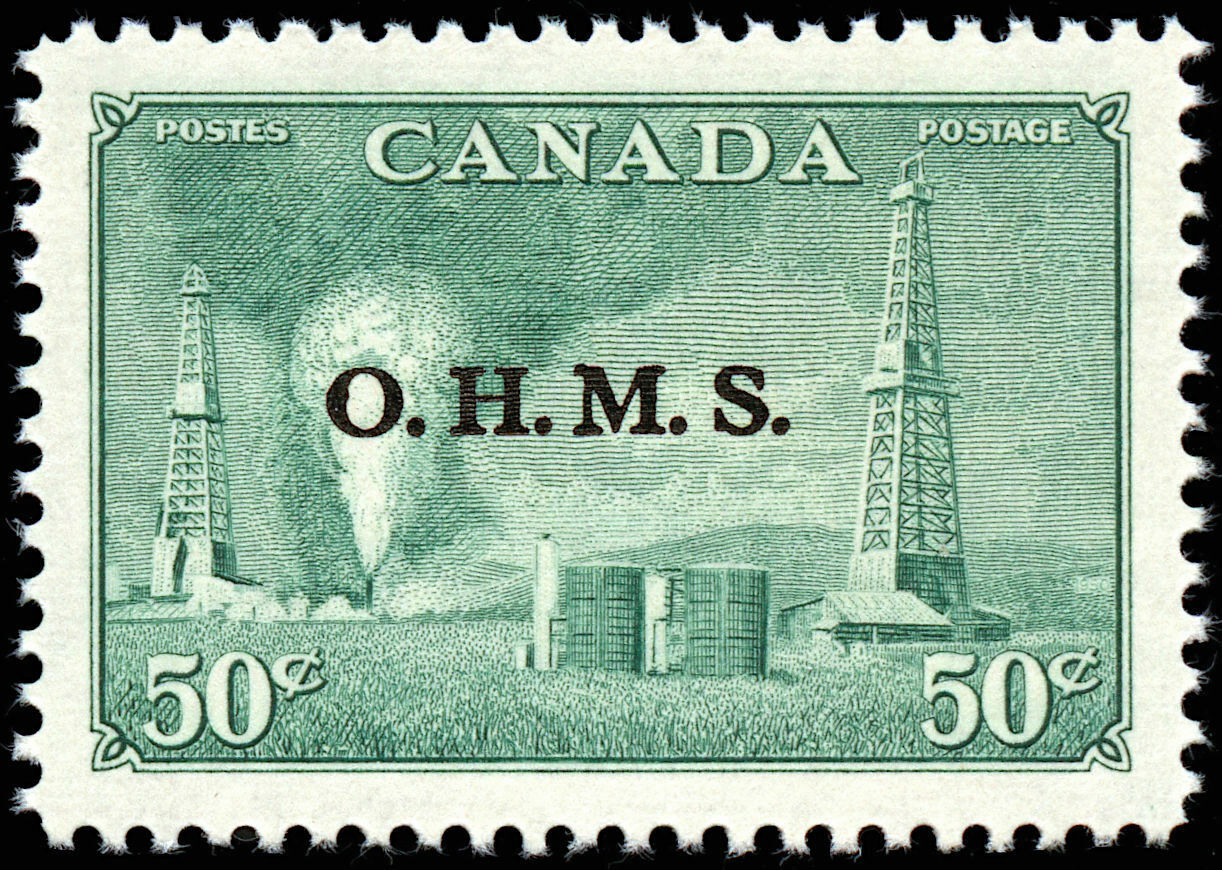 Canada Stamp – O – Official #O11 – Oil wells (1950) 50¢ Overprinted O.H.M.S. (MH)