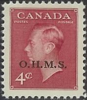 Canada Stamp – Official #O15 – King George VI, Postes-Postage (1950) 4¢ O.H.M.S.