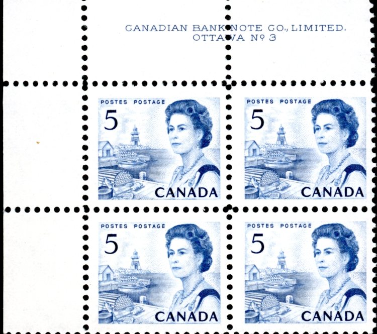 Canada Stamp PB#458VI – Queen Elizabeth II & Fishing Village (1967) 5¢
