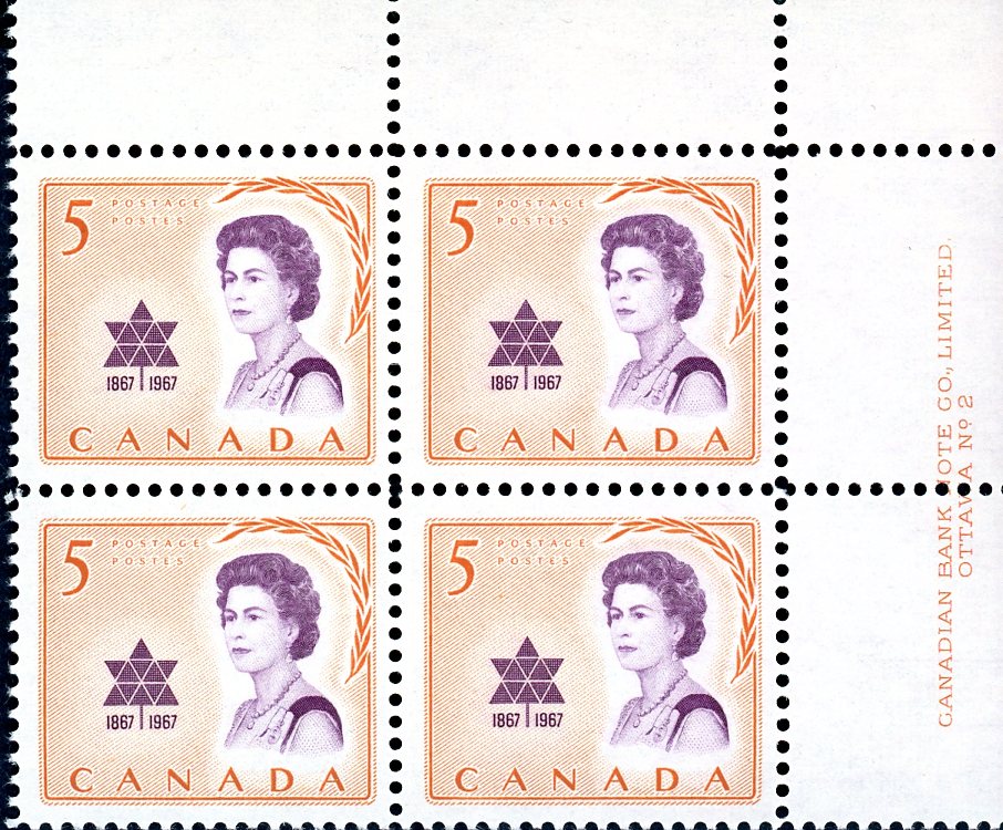 Canada Stamp PB#471 – Queen Elizabeth II and Centennial Symbol (1967) 5¢