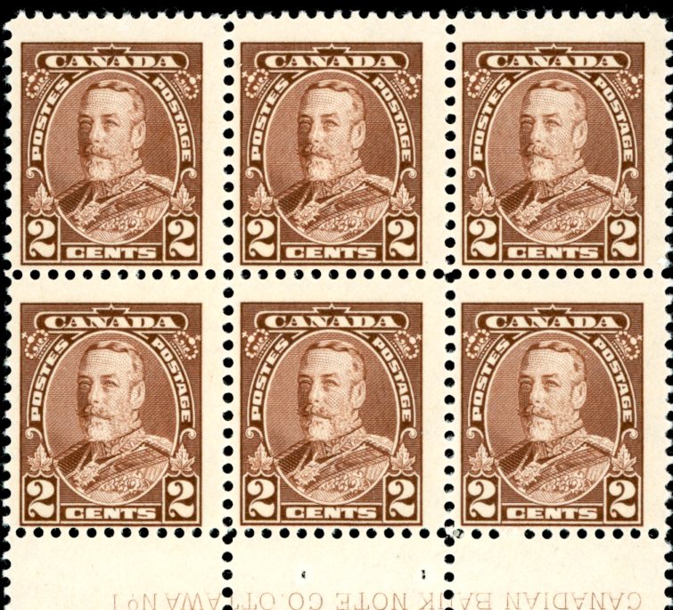 Canada Stamp PLATE BLOCK #218 – King George V (1935) 2¢