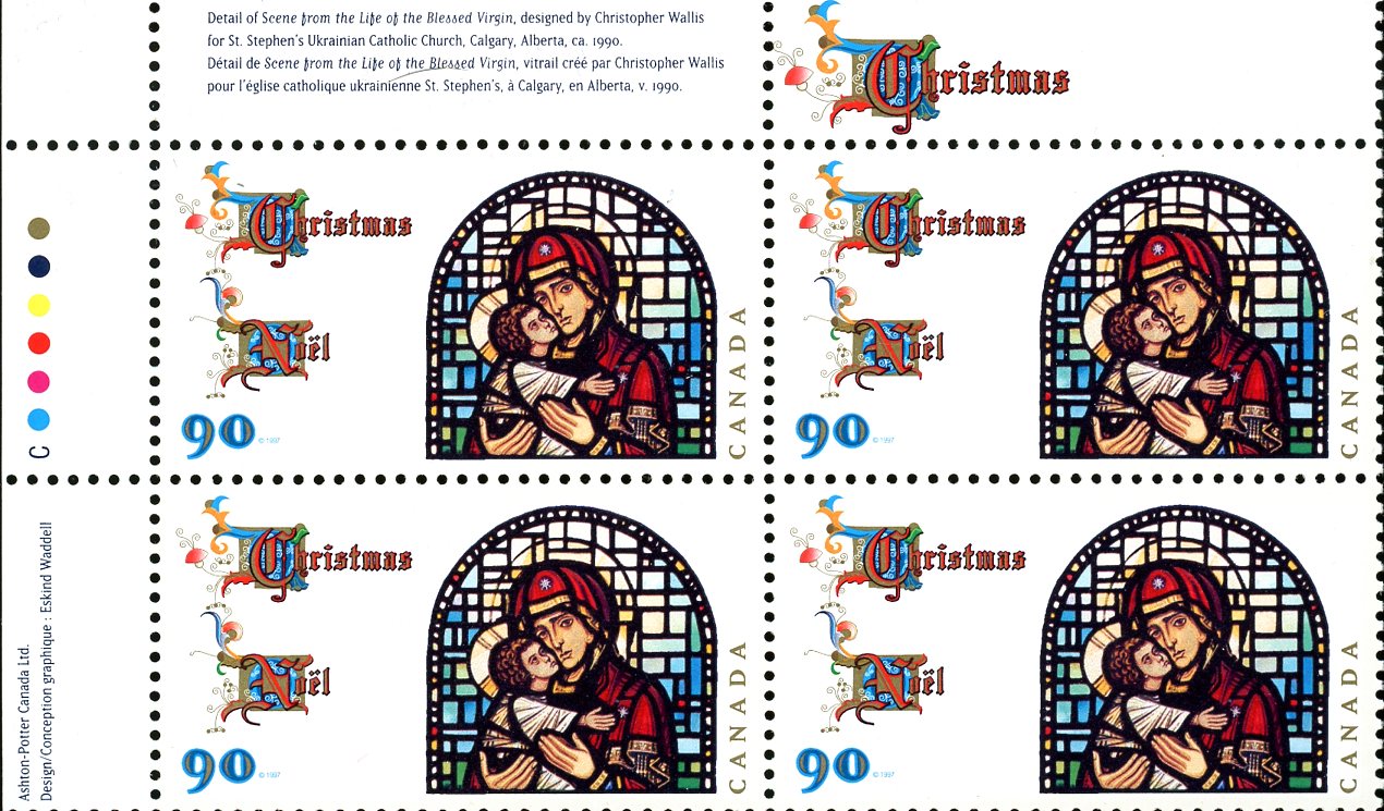 Canada Stamp PLATE BLOCK#1671 – Scene from the life of the Blessed Virgin, by Christopher Wallis (1997) 90¢