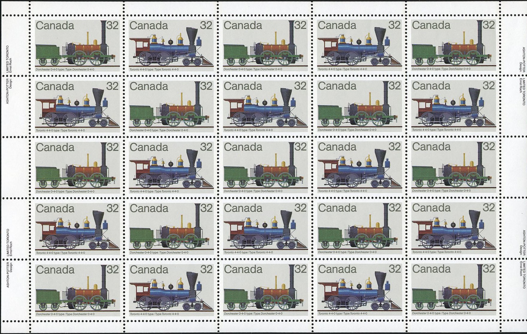 Canada Stamp SHEET#1000a – Canadian Locomotives (1836-1860)-1 (1983) 25 x 32¢
