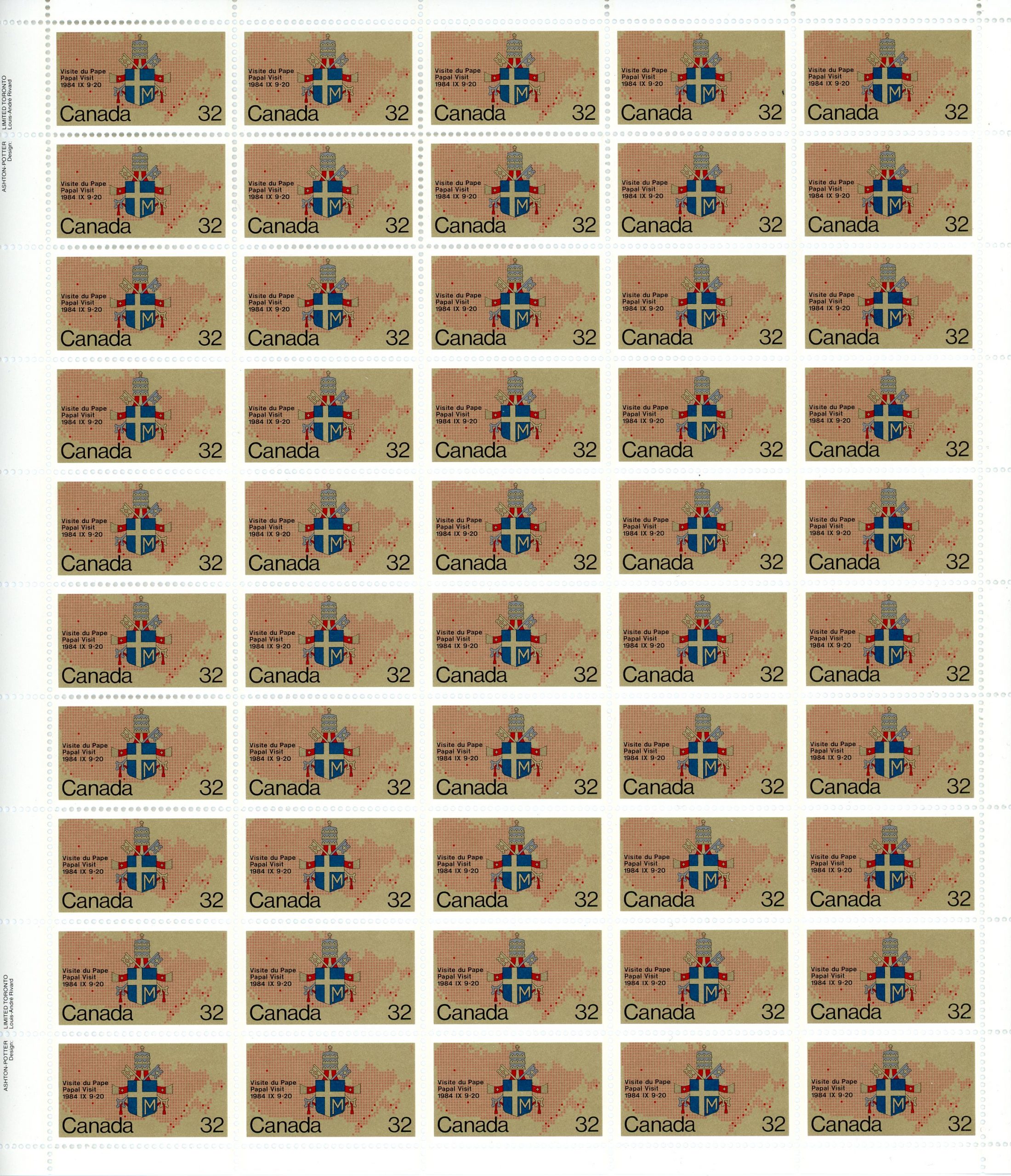 Canada Stamp SHEET#1030 – Papal coat-of-arms and map (1984) 32¢