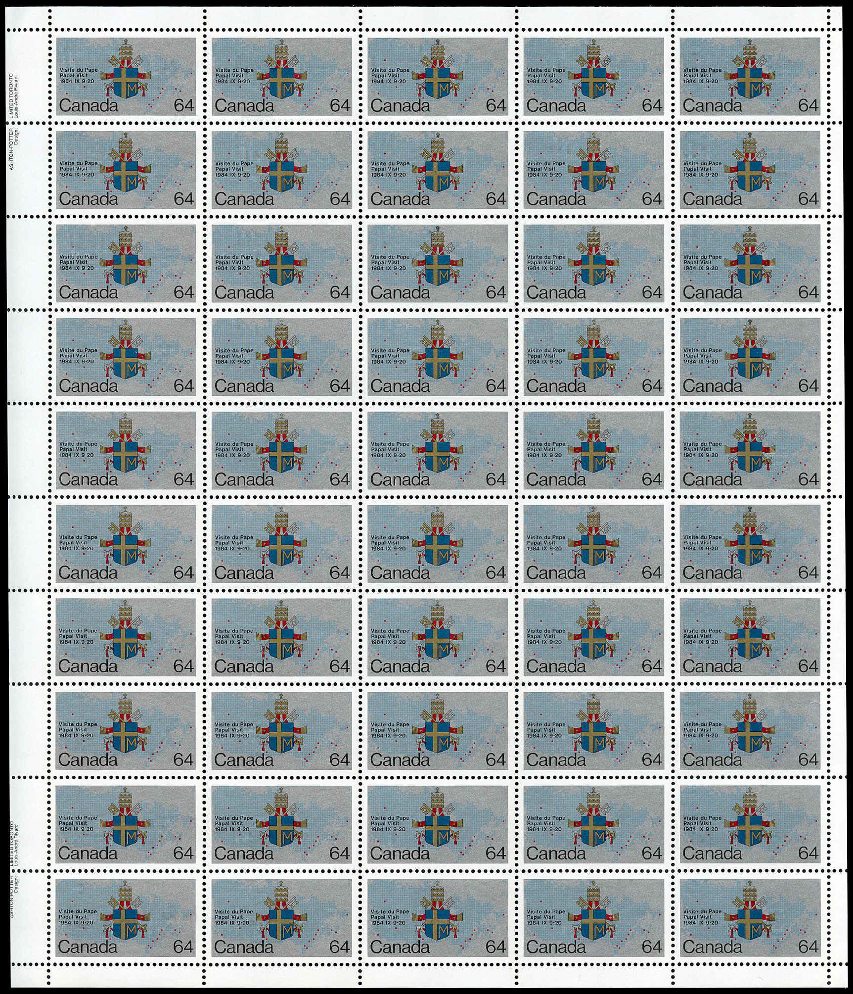 Canada Stamp SHEET#1031 – Papal coat-of-arms and map (1984) 64¢