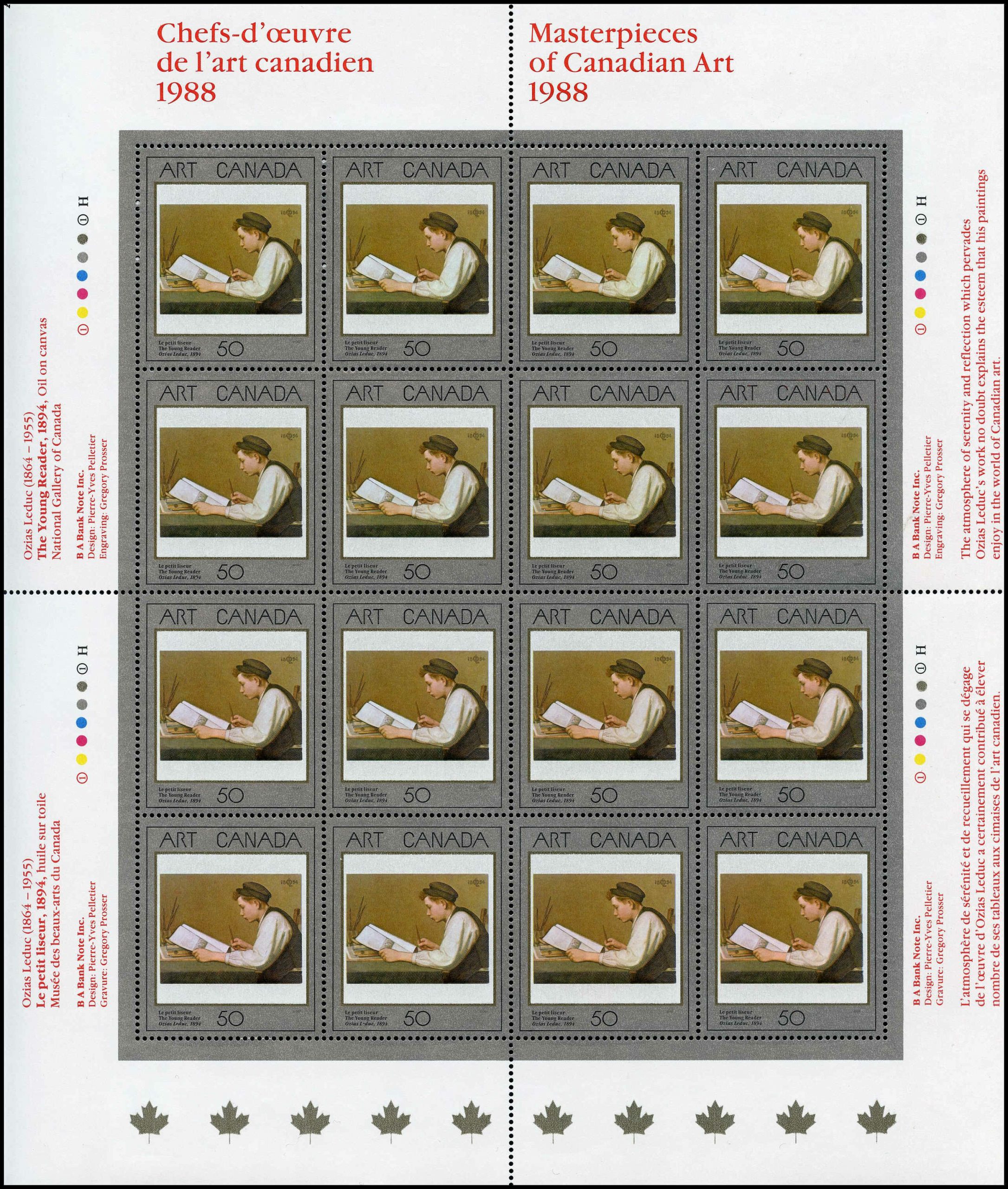 Canada Stamp SHEET#1203i – The Young Reader (1988) 50¢ Low fluorescence