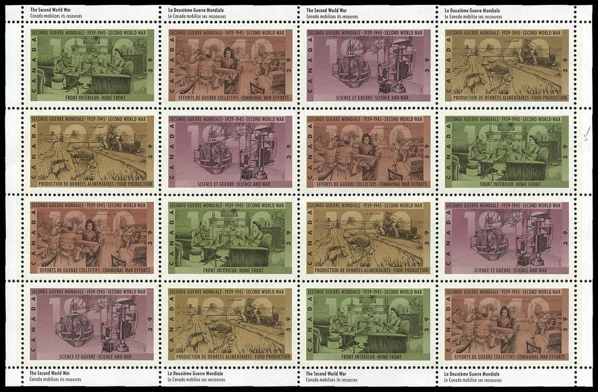 Canada Stamp SHEET#1301a – Second World War-1940 (1990) 4 x 39¢ Se-tenant block (1298-1301)