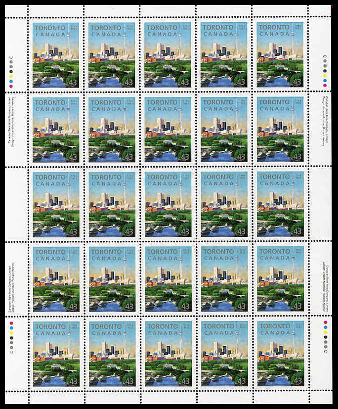 Canada Stamp SHEET#1484 – Founding of Toronto (1993) 43¢