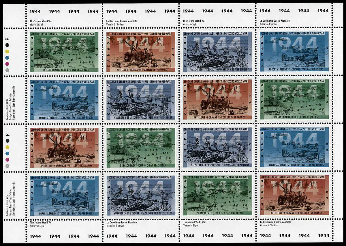 Canada Stamp SHEET#1540a – Second World War-1944 (1994) 4 x 43¢ Se-tenant block (1537-1540), MF