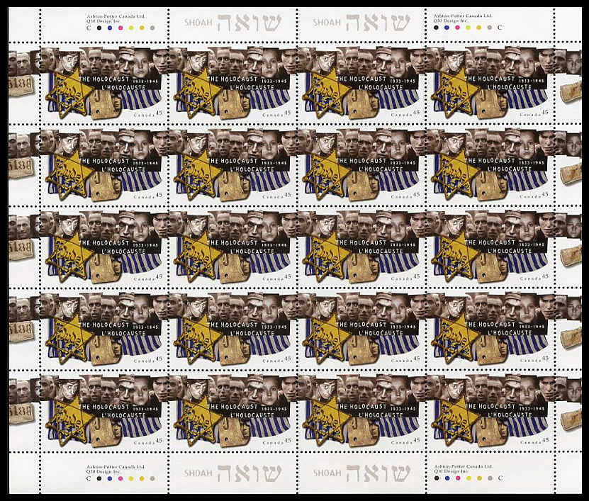 Canada STAMP SHEET#1590 – The Holocaust (1995) 45¢