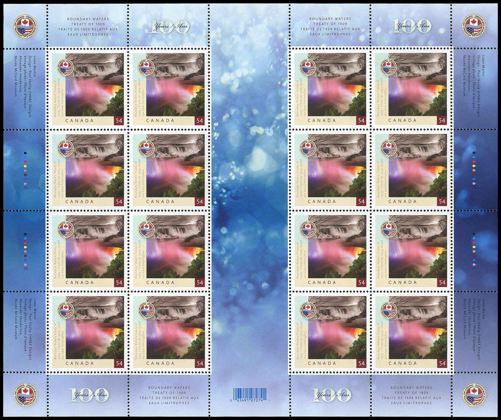 Canada Stamp SHEET#2332 – Niagara Falls US side, and at night (2009) 54¢