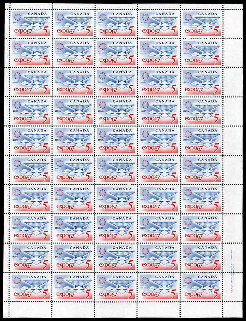 Canada Stamp SHEET#469 – Katimavik, Canadian Pavillion (1967) 5¢