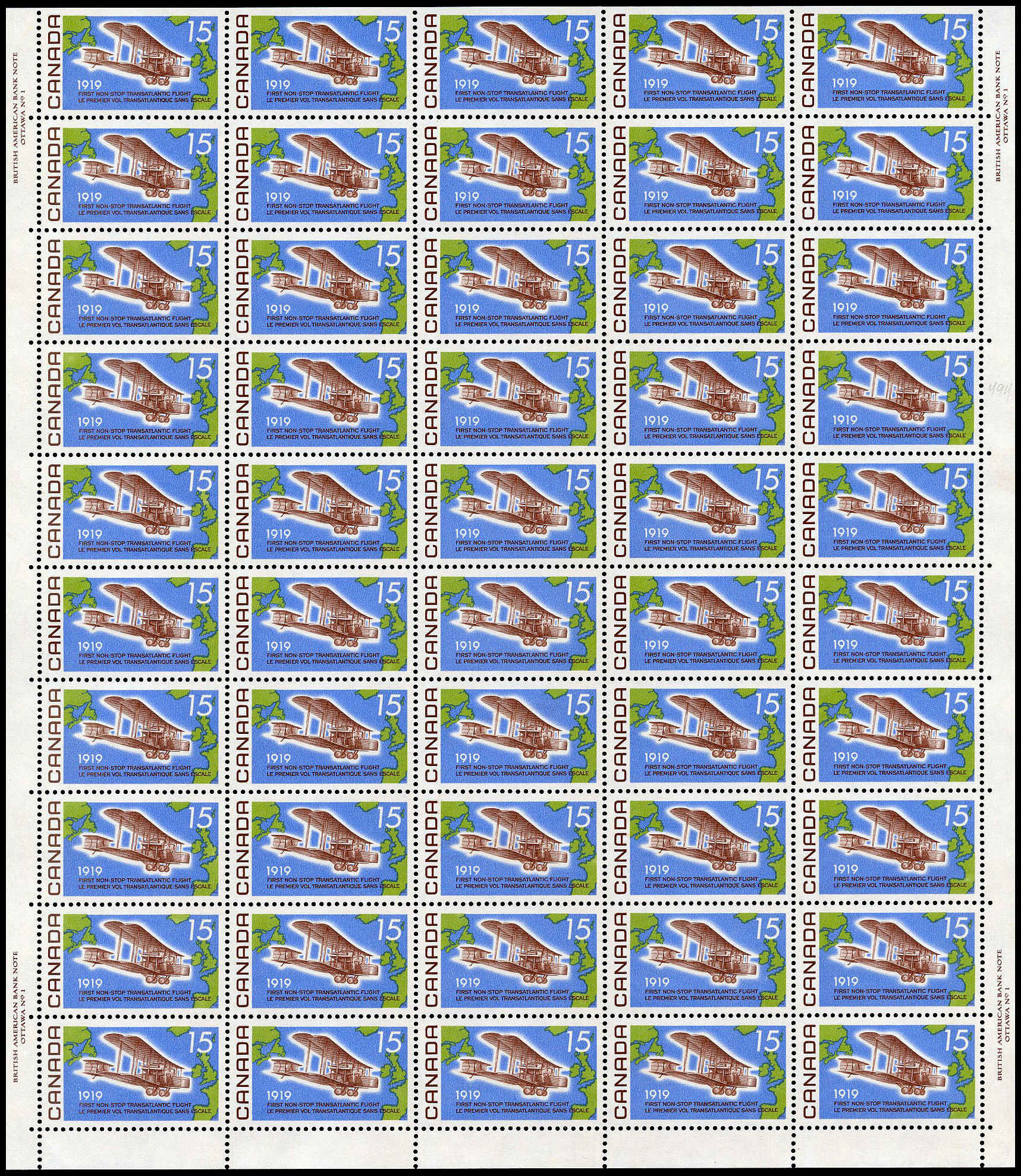 Canada Stamp SHEET#494 – Vickers Vimy over Atlantic (1969) 15¢ Dull