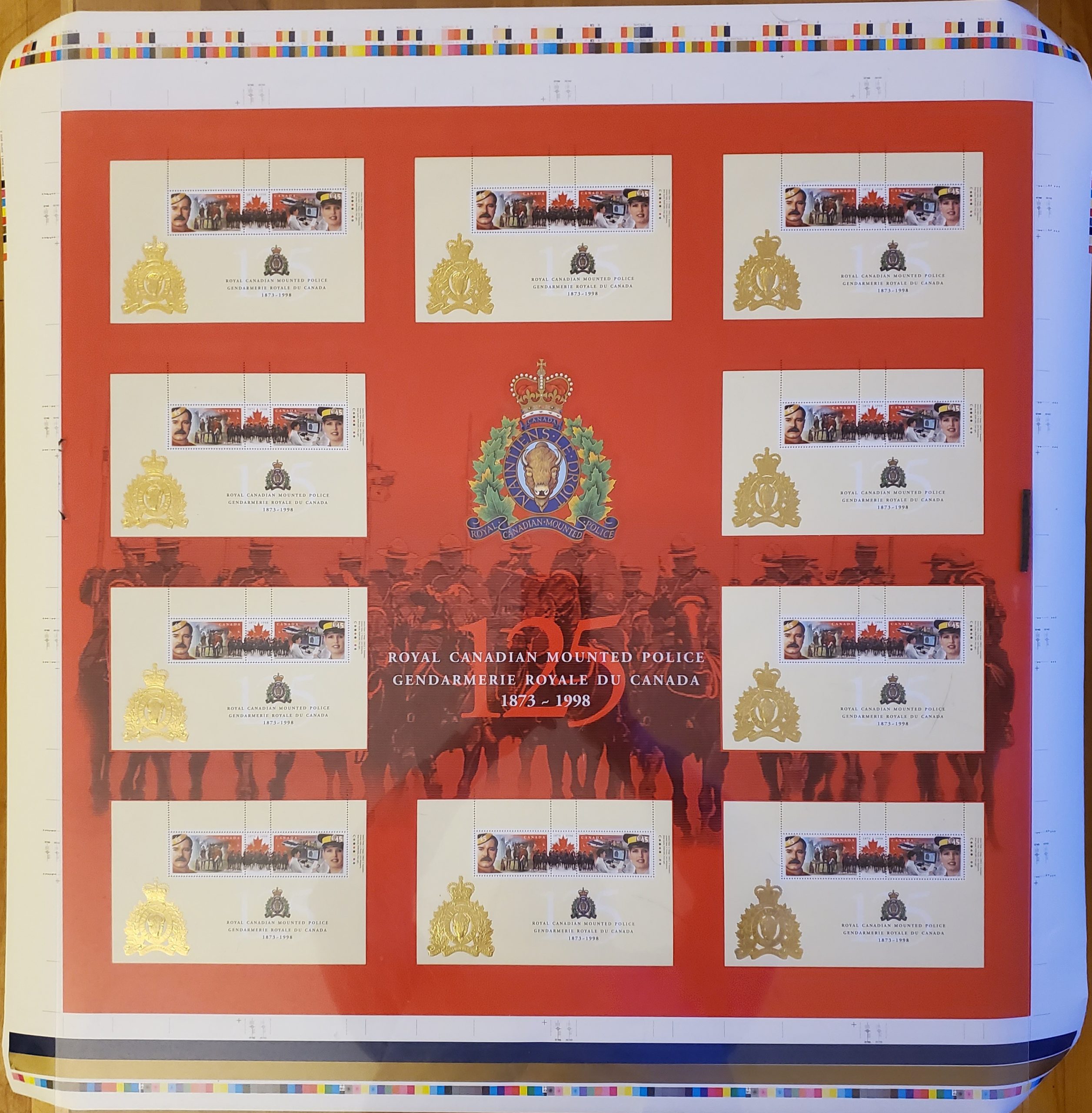 Canada Stamp UNCUT PRESS SHEET#1737b – RCMP-125th Anniversary (1998) 2 x 45¢