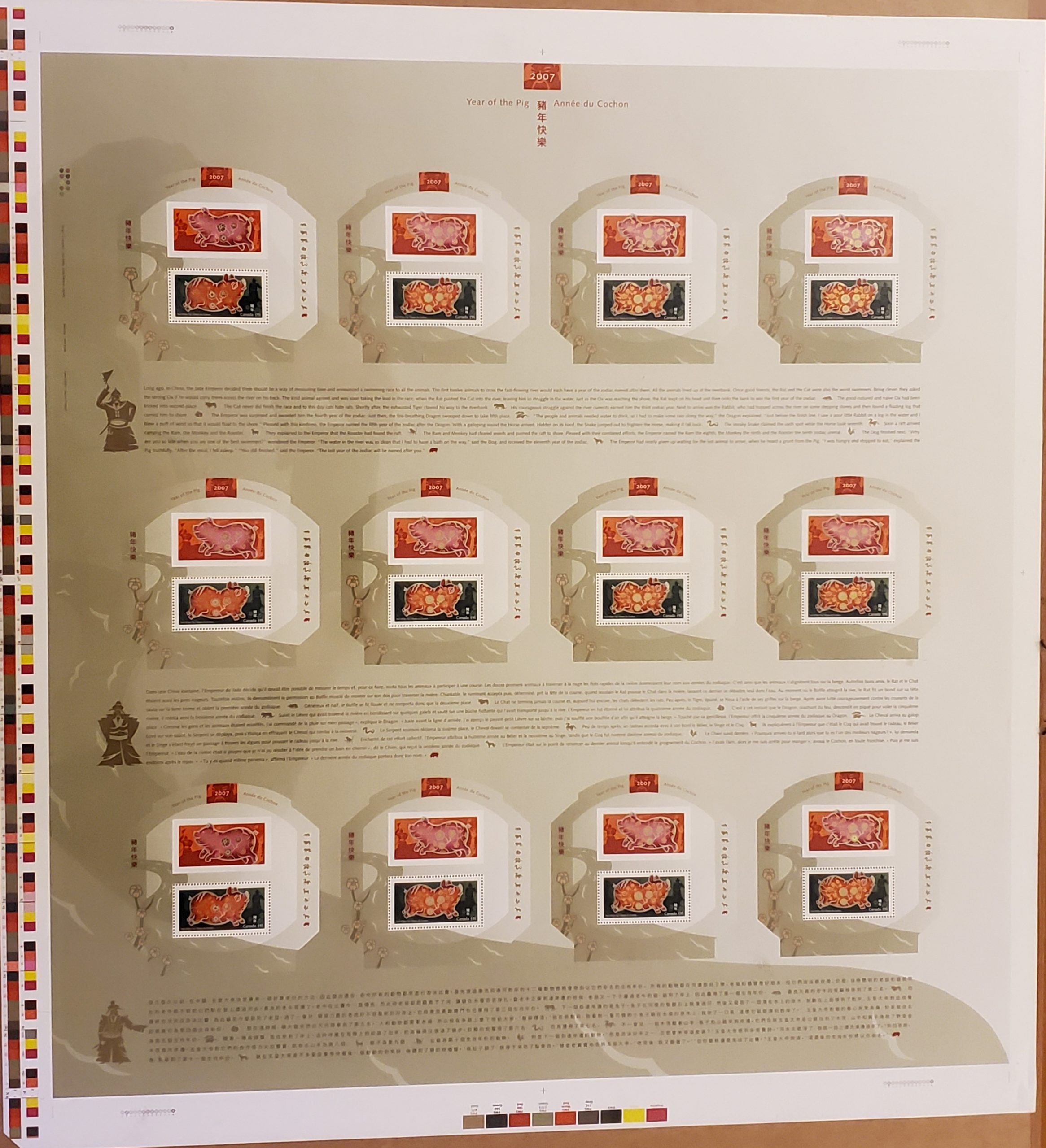 Canada Stamp UNCUT PRESS SHEET#2202II – Year of the Pig (2007) $1.55