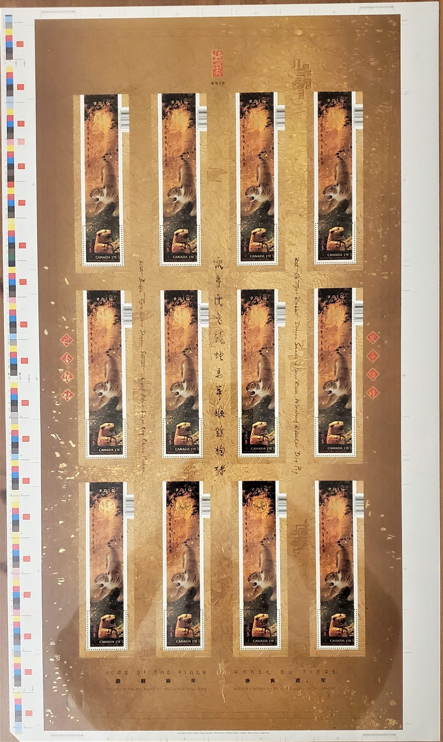 Canada Stamp UNCUT PRESS SHEET#2349II – Sculpted tiger seal (2010) $1.70