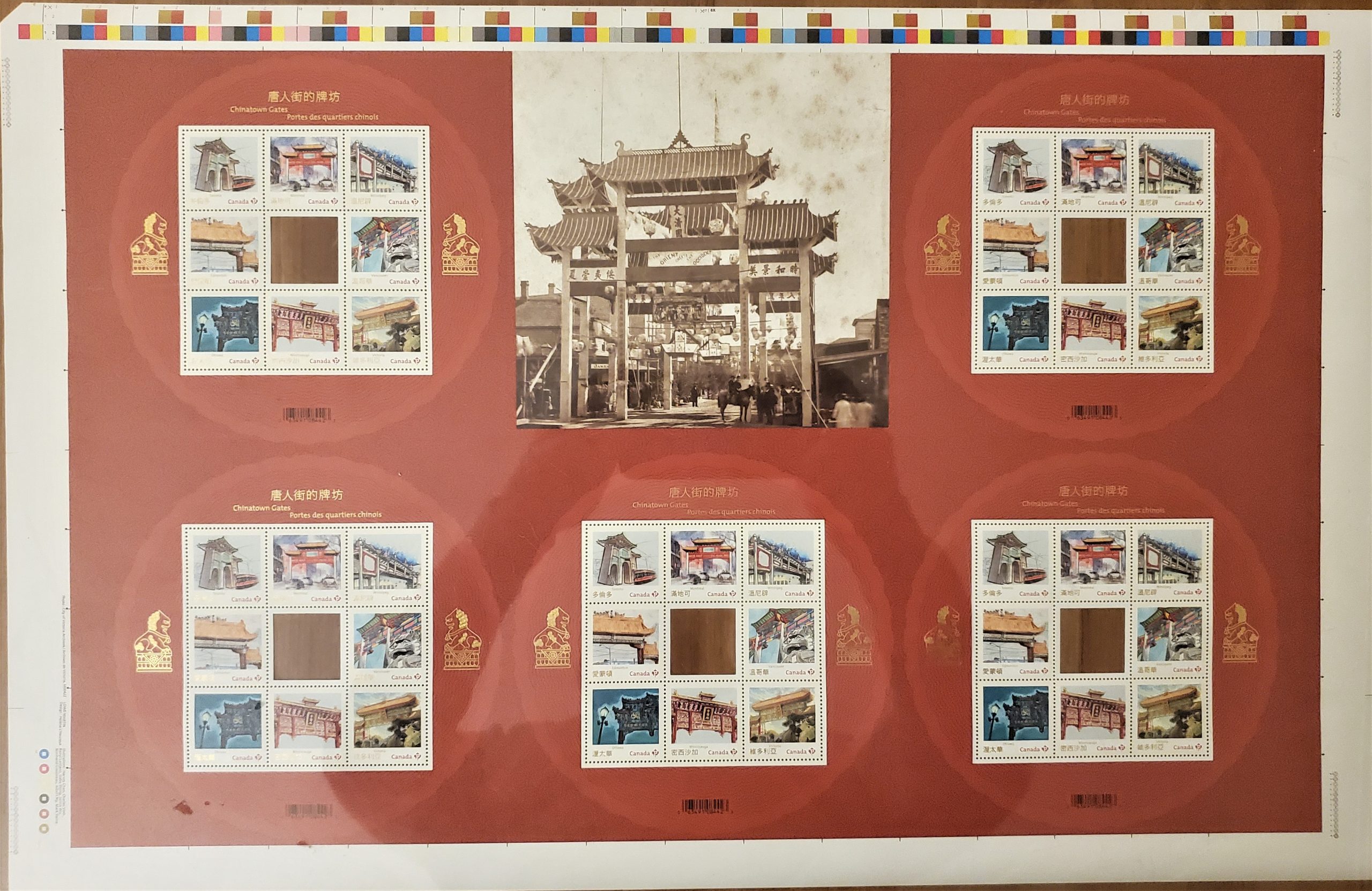 Canada Stamp UNCUT PRESS SHEET#2642I – Chinatown Gates (2013) 8 x P (63¢)