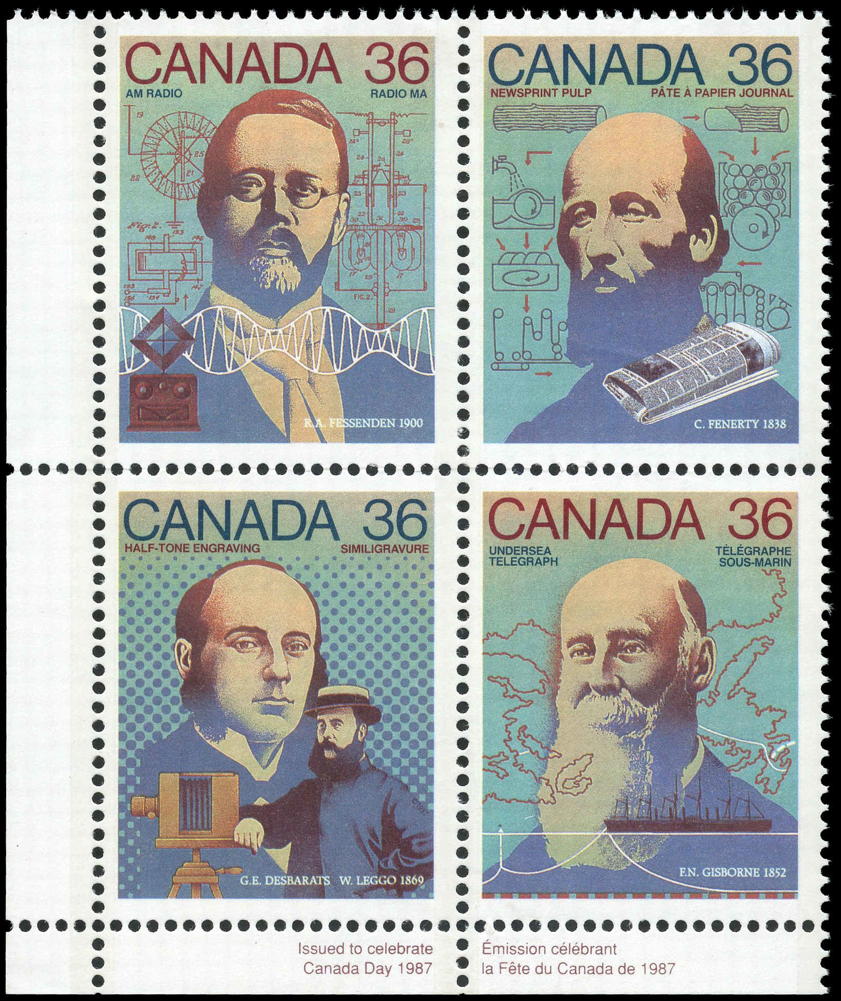 Canada STAMP#1138a – Canada Day – Science and Technology – 2 (1987) 4 x 36¢ Se-tenant block (1135-1138)
