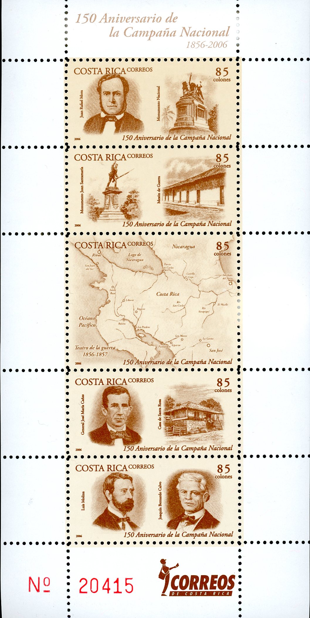 Costa Rica Stamp Sc#590 – (2006) Mini-sheet – The 150th Anniversary of the National Campaign