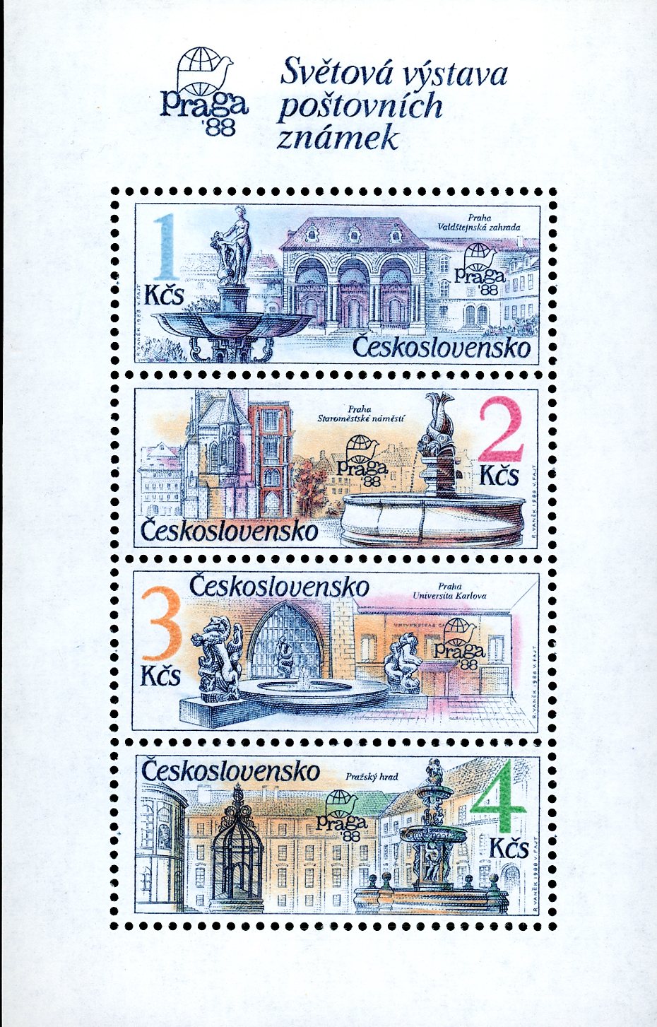Czechoslovakia Stamp Cs#2708a – (1988) – S/Sheet – Praga ’88 Exhibition Emblem and fountains