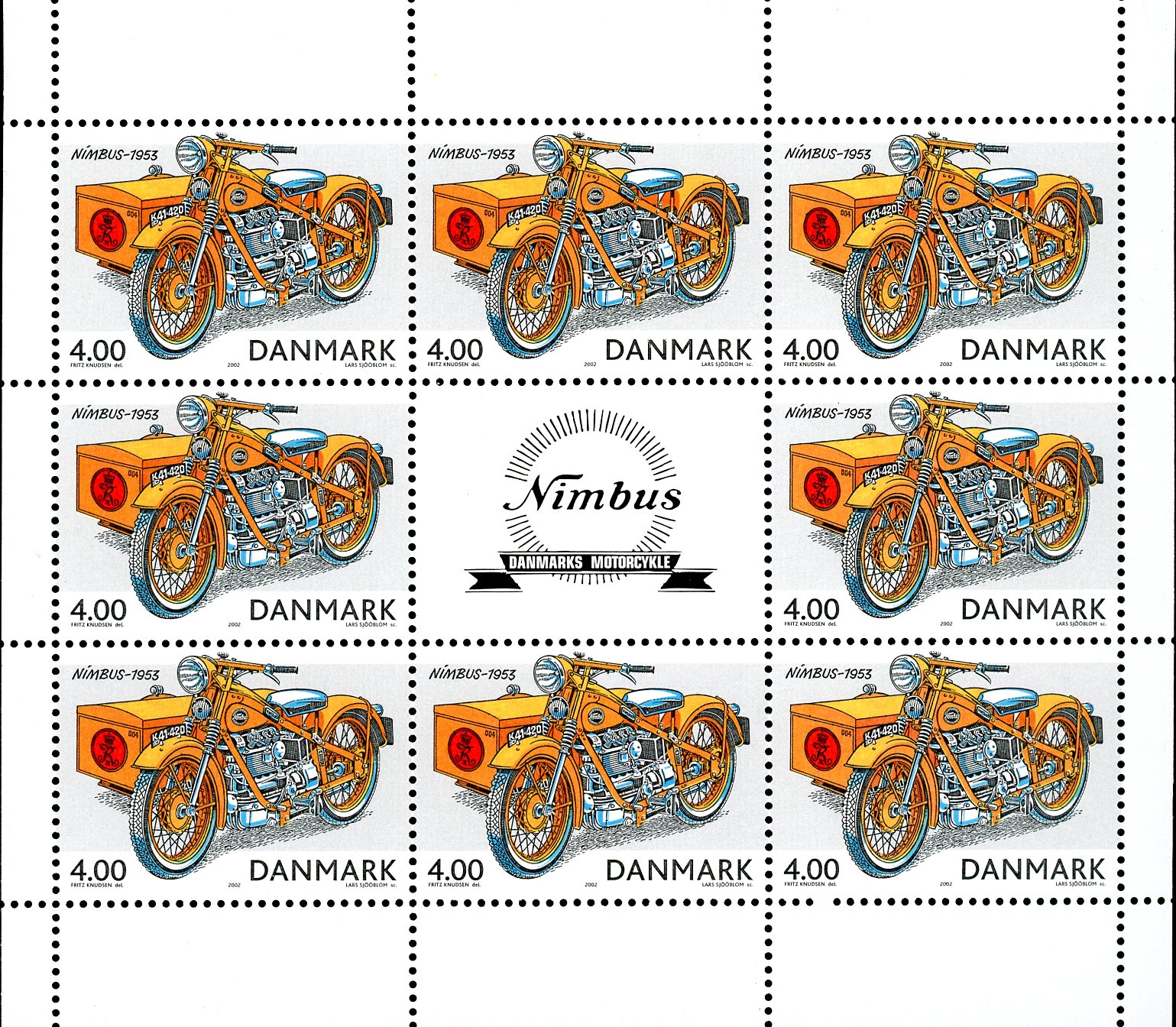 Denmark Sc#1230a – 2002 – Nimbus Motorcyle – Minisheet of 8 plus label, MNH