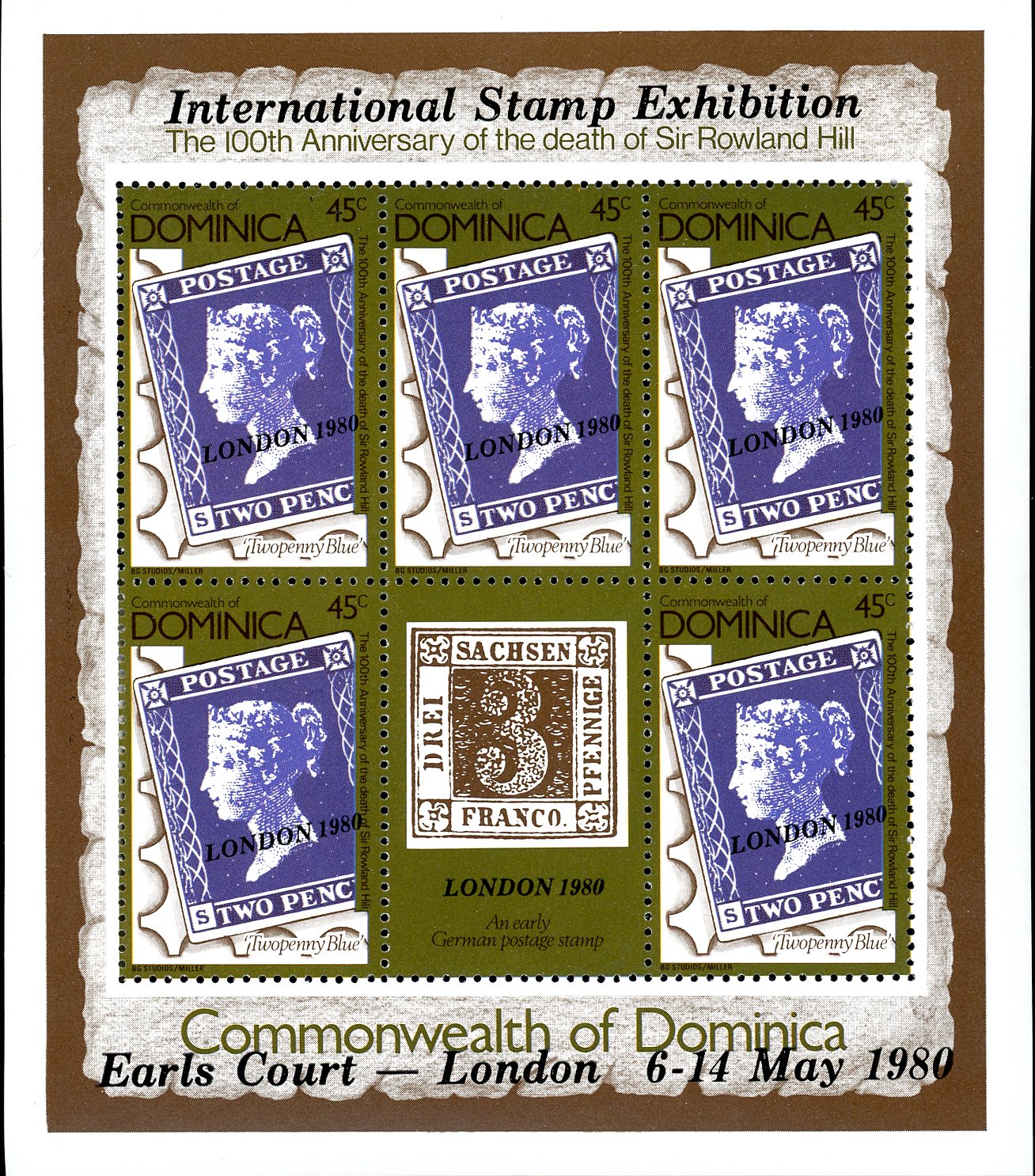 Dominica Stamp Sc#663A – 1980 – S/Sheet – Sir Rowland Hill – Overprinted “LONDON 1980”