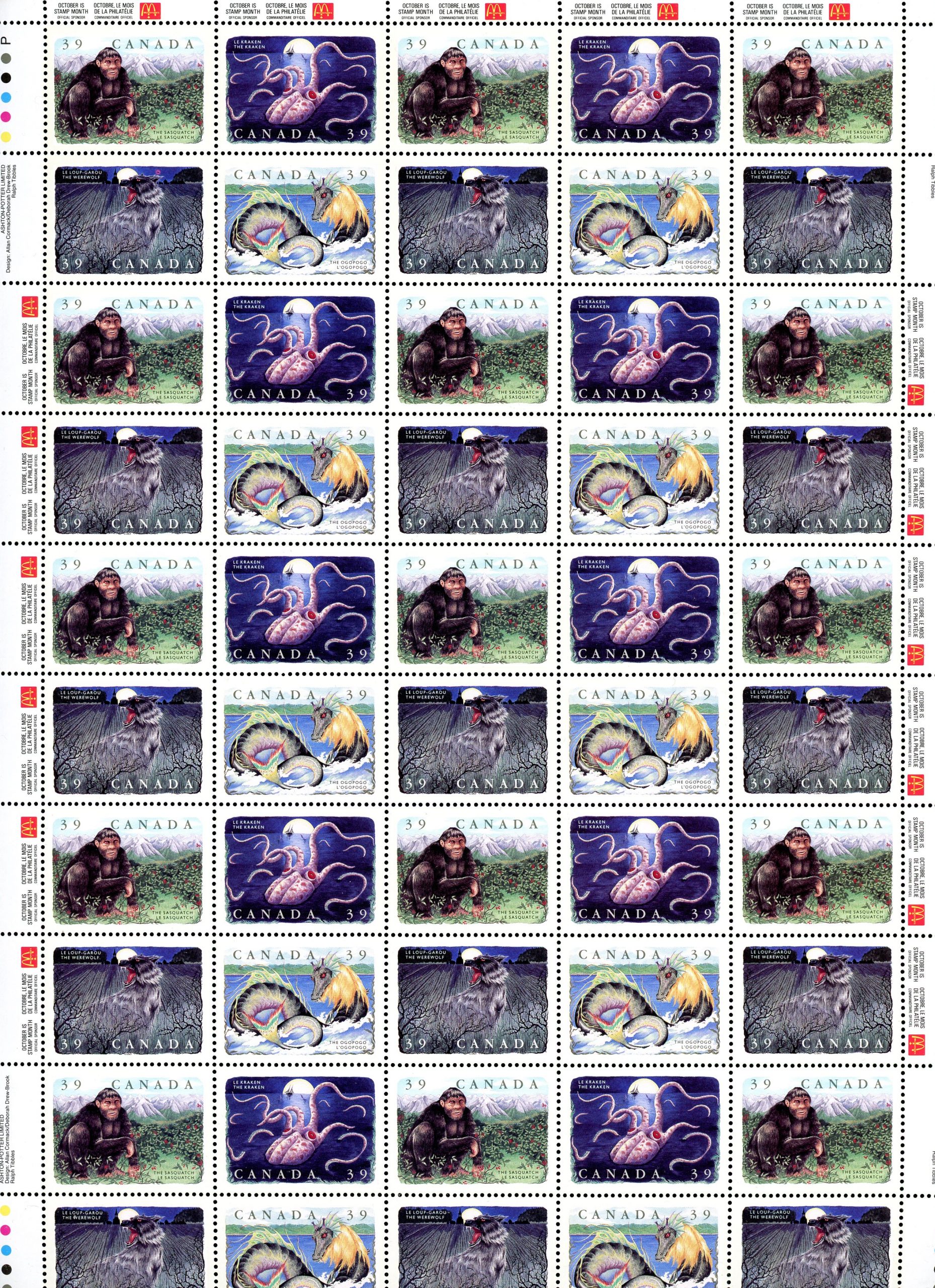 Canada Stamp SHEET#1292d – Canadian Folklore-1 (1990) 4 x 39¢