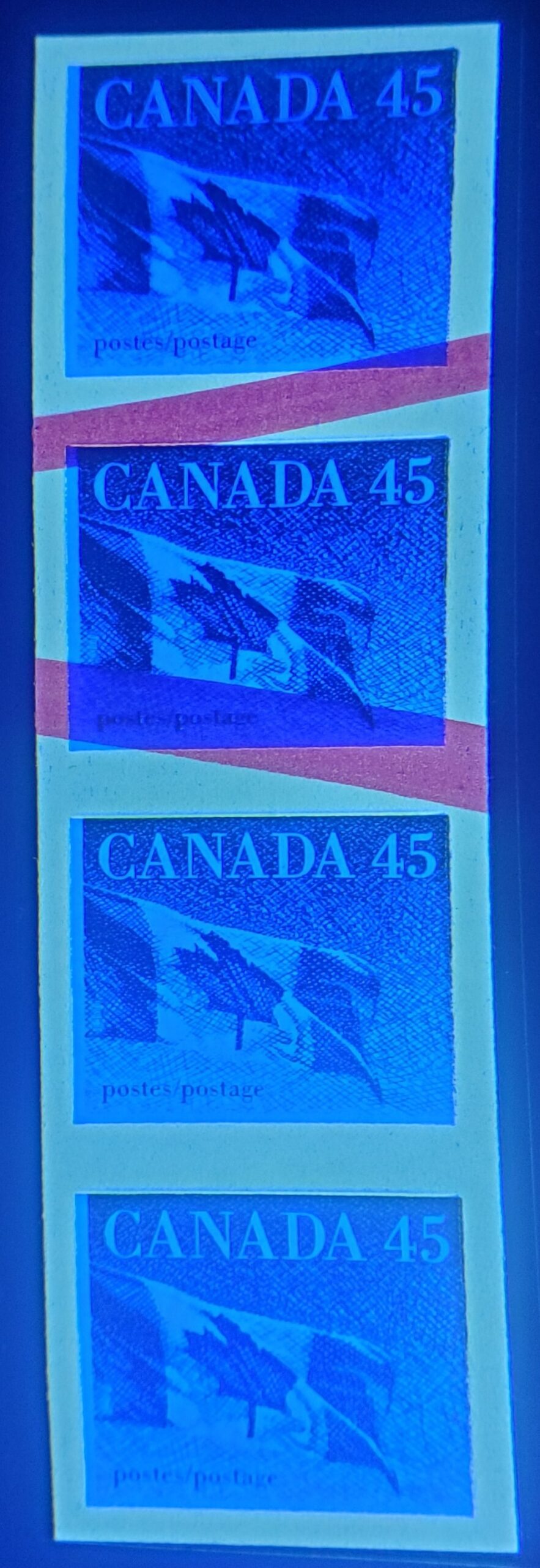 Canada Stamp #1396a – Canada flag (1995) 45¢ Imperforated strip, HB