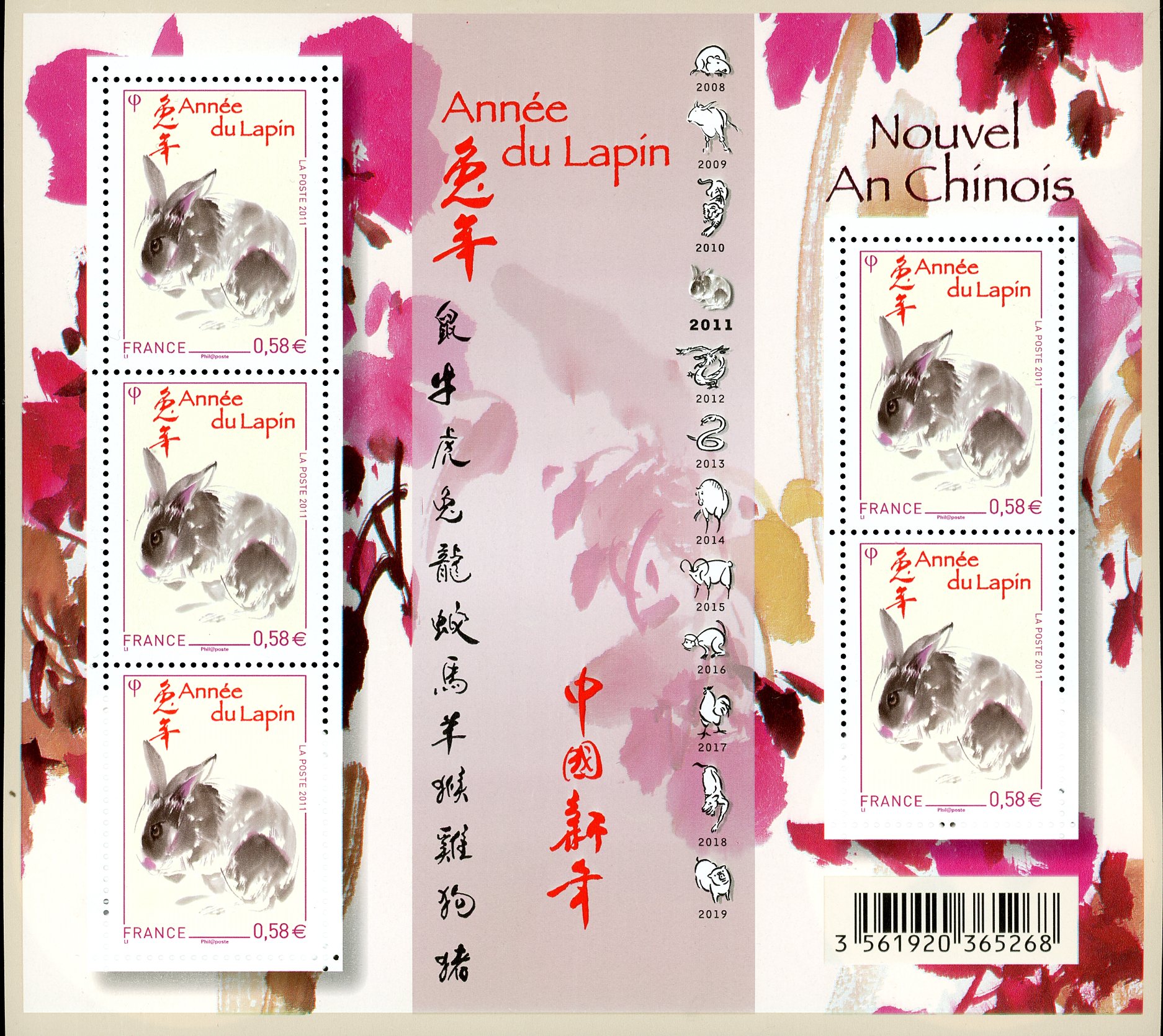 France Stamp Sc#3930 – 2011 – S/Sheet – Year of the Rabbit