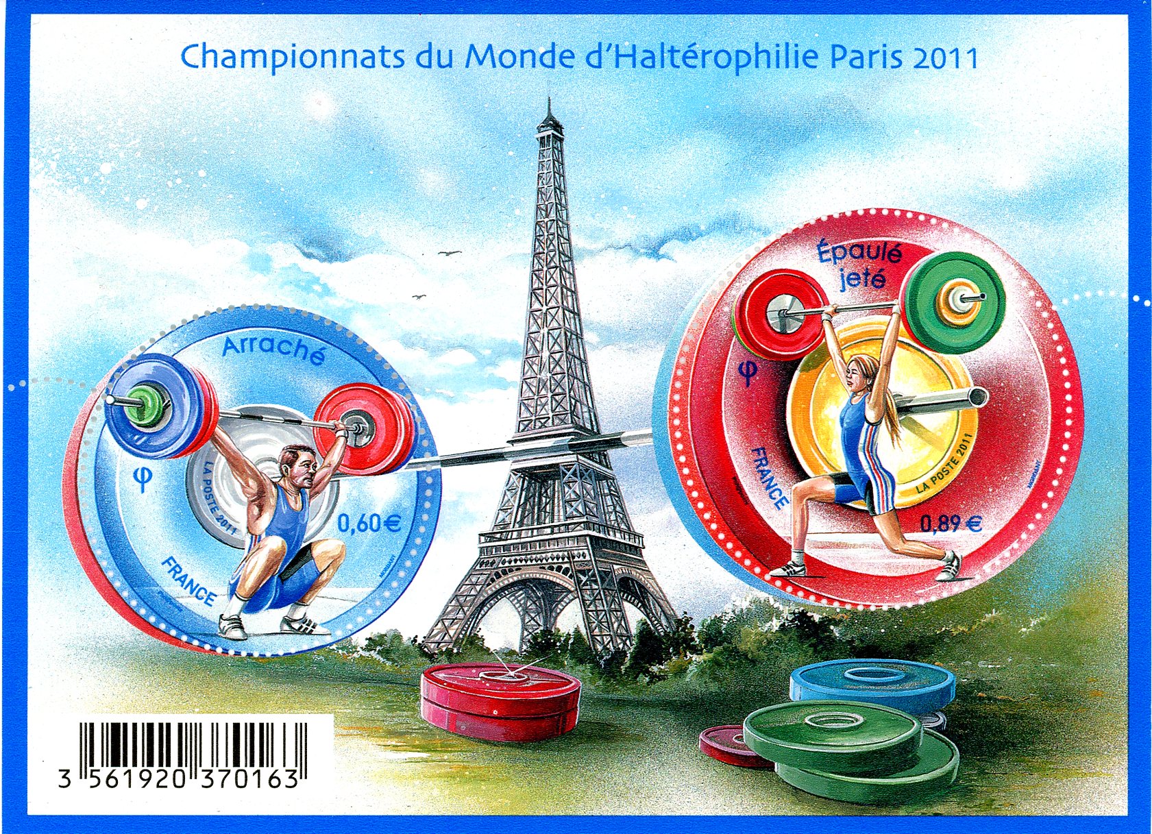 France Stamp Sc#4091 – 2011 – S/Sheet – World Weight Lifting Championships