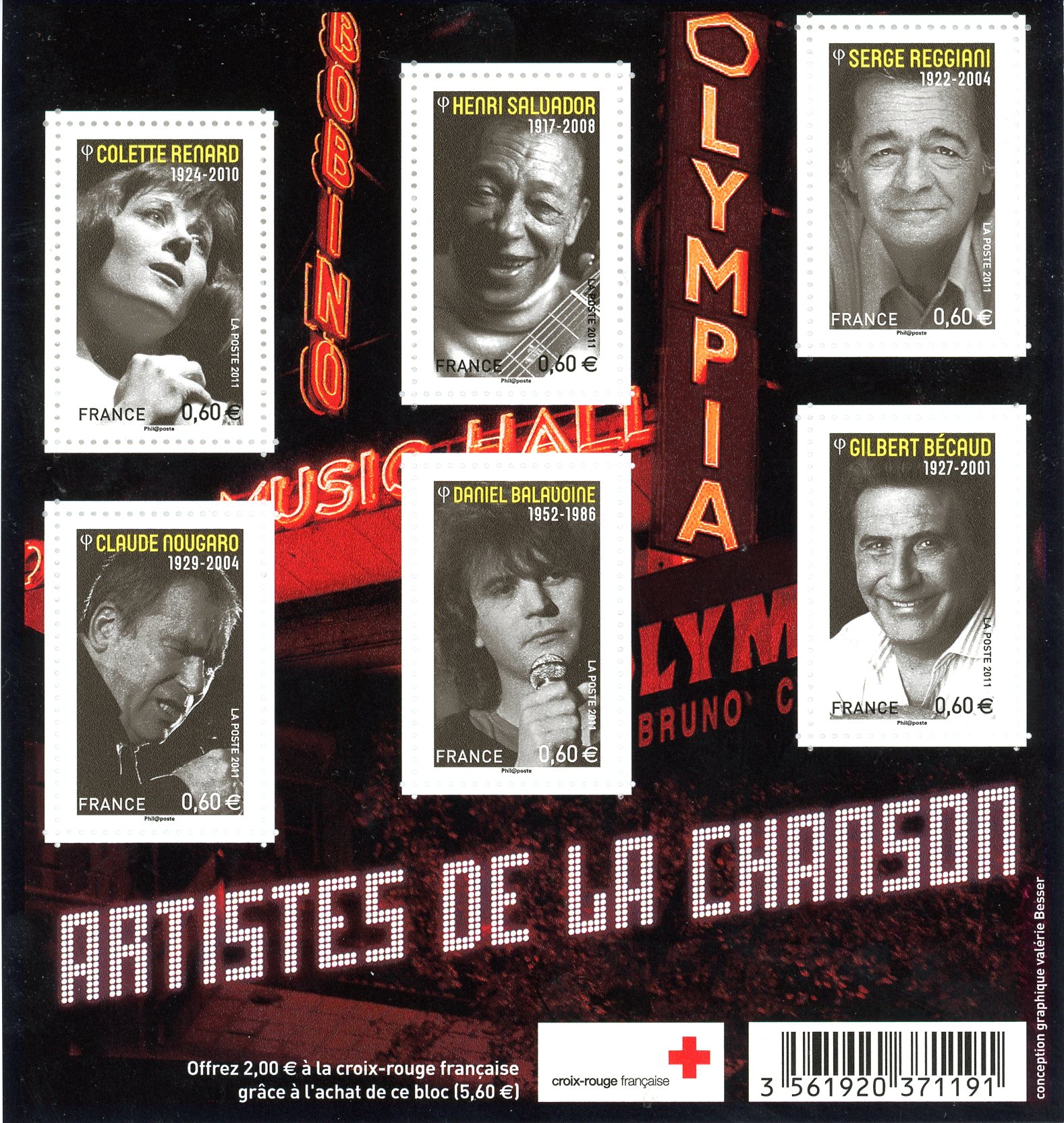 France Stamp Sc#B721 – 2011 – S/Sheet – Singers