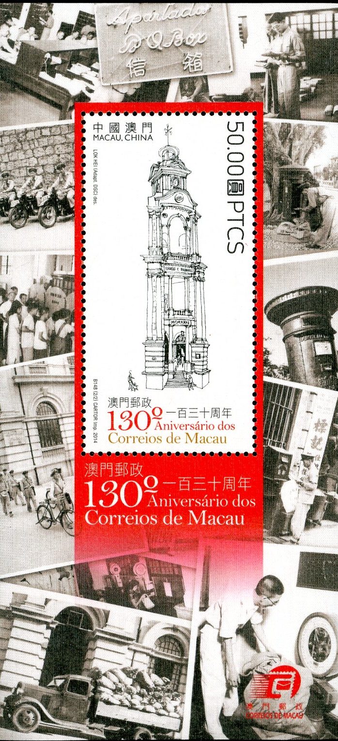 Macao Stamp Sc#1417 – (2014) S/SHEET – The 130th Anniversary of Macao Post — Silk-Face Granite Paper