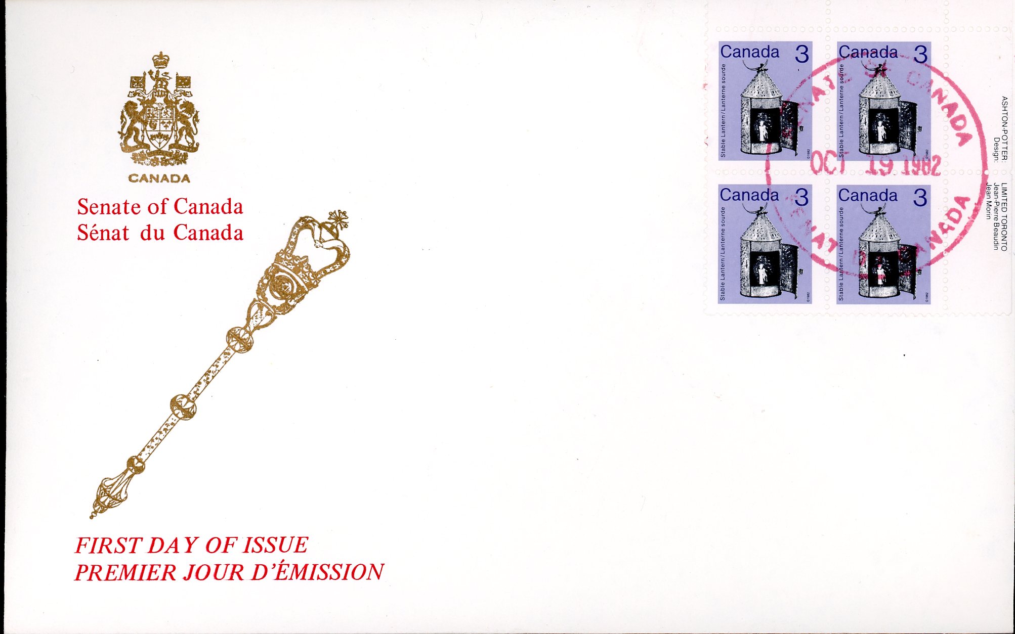 RARE SENATE of Canada Stamp PLATE BLOCK #919 – Lantern (1982) 3¢