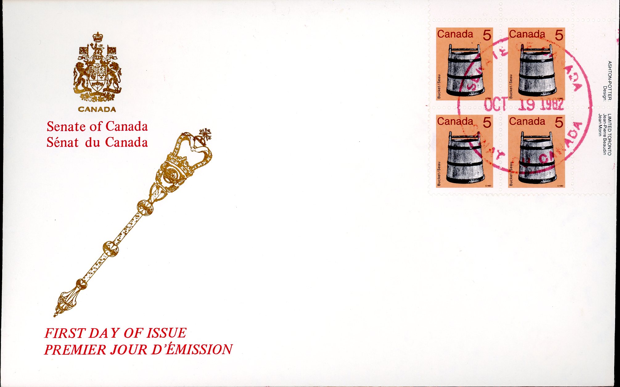 RARE SENATE of Canada Stamp PLATE BLOCK #920 – Bucket (1982) 5¢