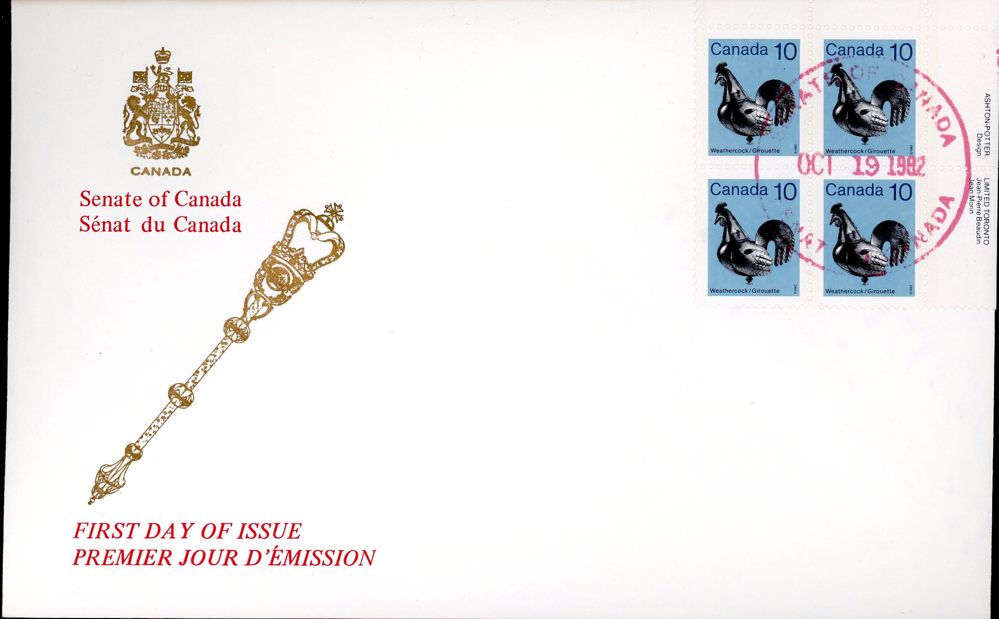 RARE SENATE of Canada Stamp PLATE BLOCK #921 – Weathercock (1982) 10¢