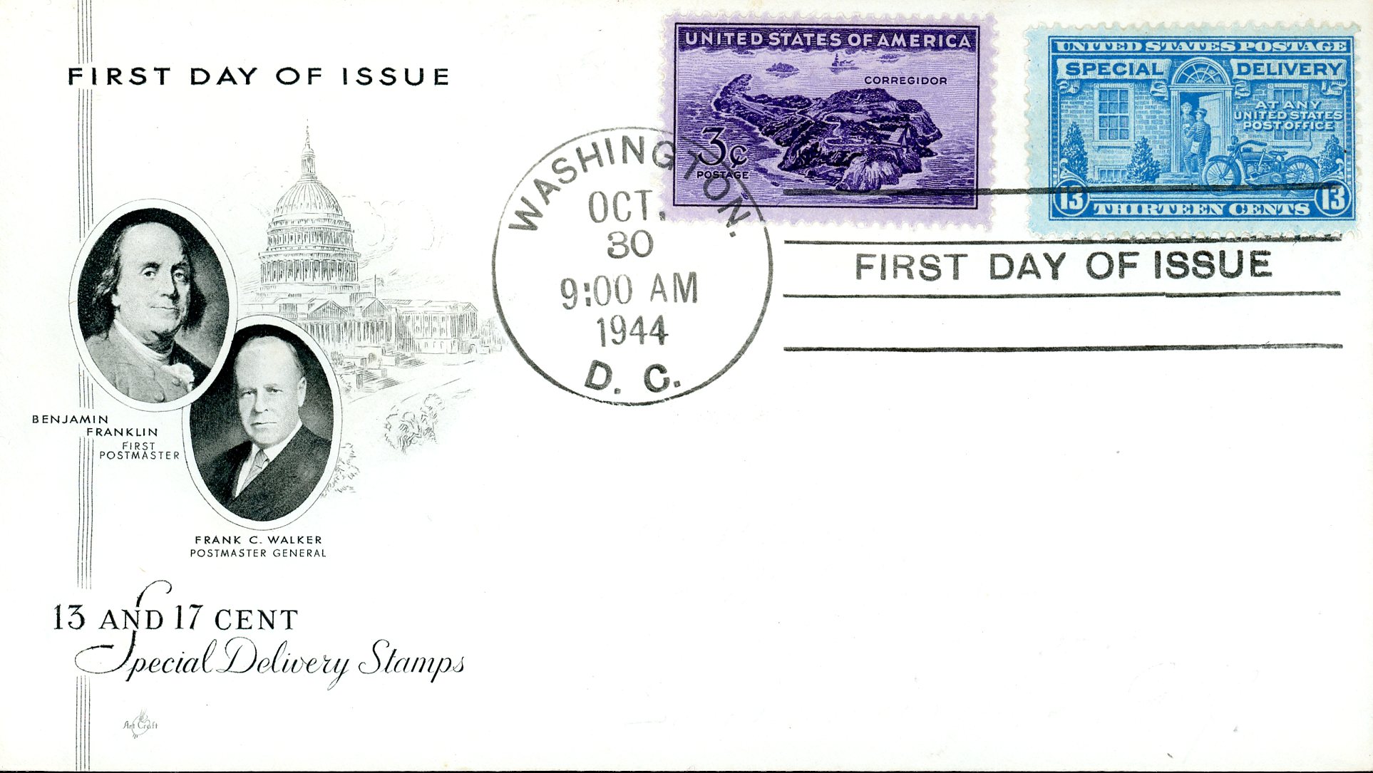 US FDC Special Delivery #E18 – Postman and Motorcycle (1944)