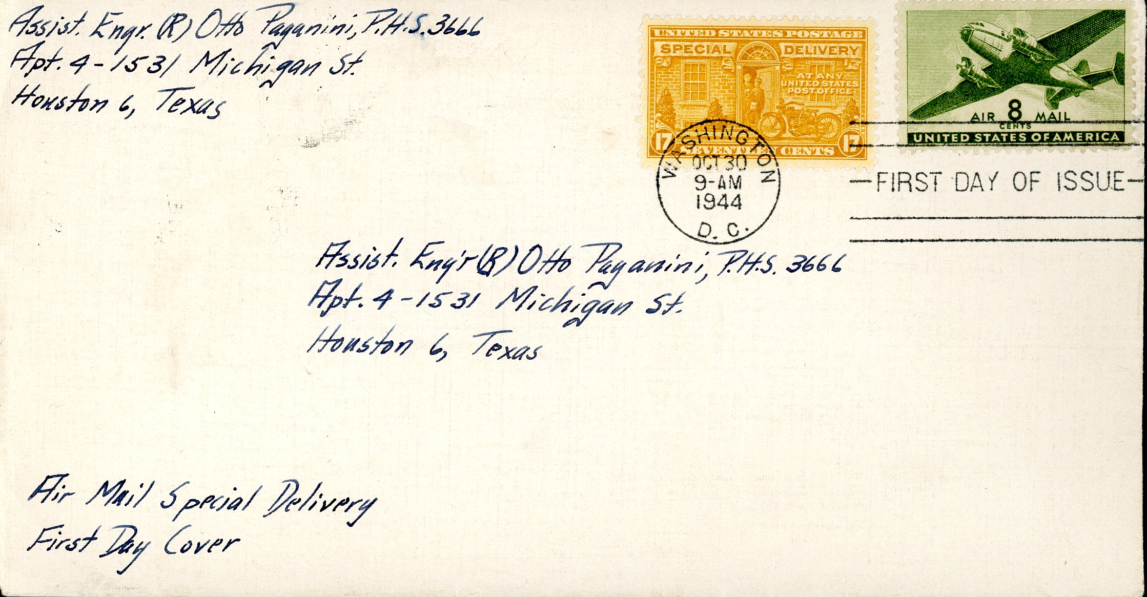 US FDC Special Delivery #E18 – Postman and Motorcycle (1944)