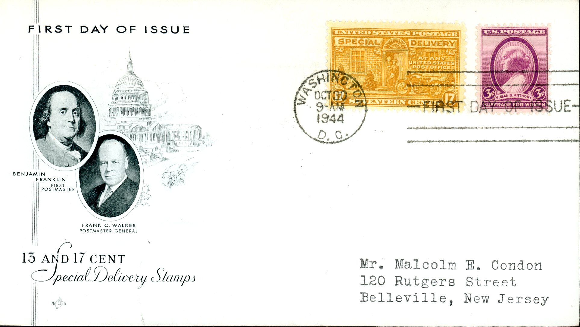 US FDC Special Delivery #E18 – Postman and Motorcycle (1944)