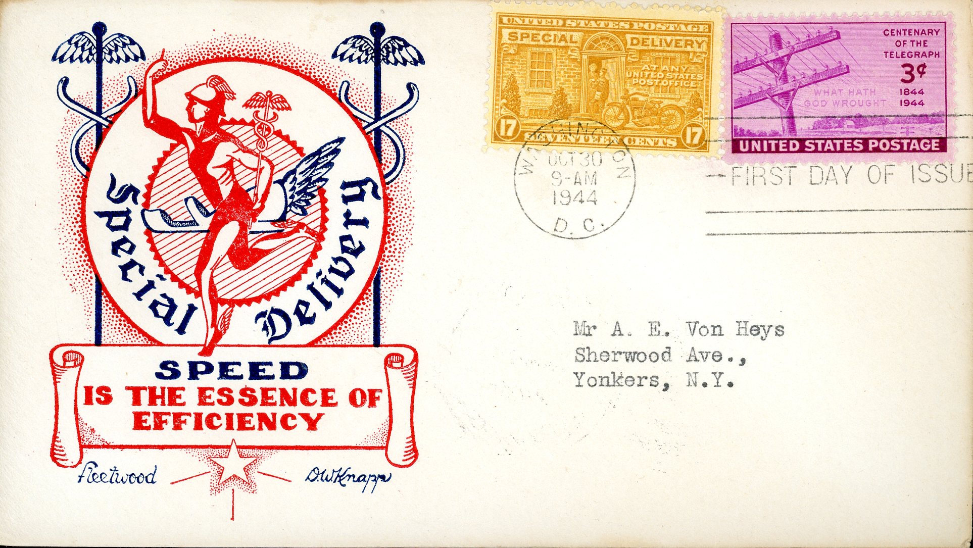 US FDC Special Delivery #E18 – Postman and Motorcycle (1944)