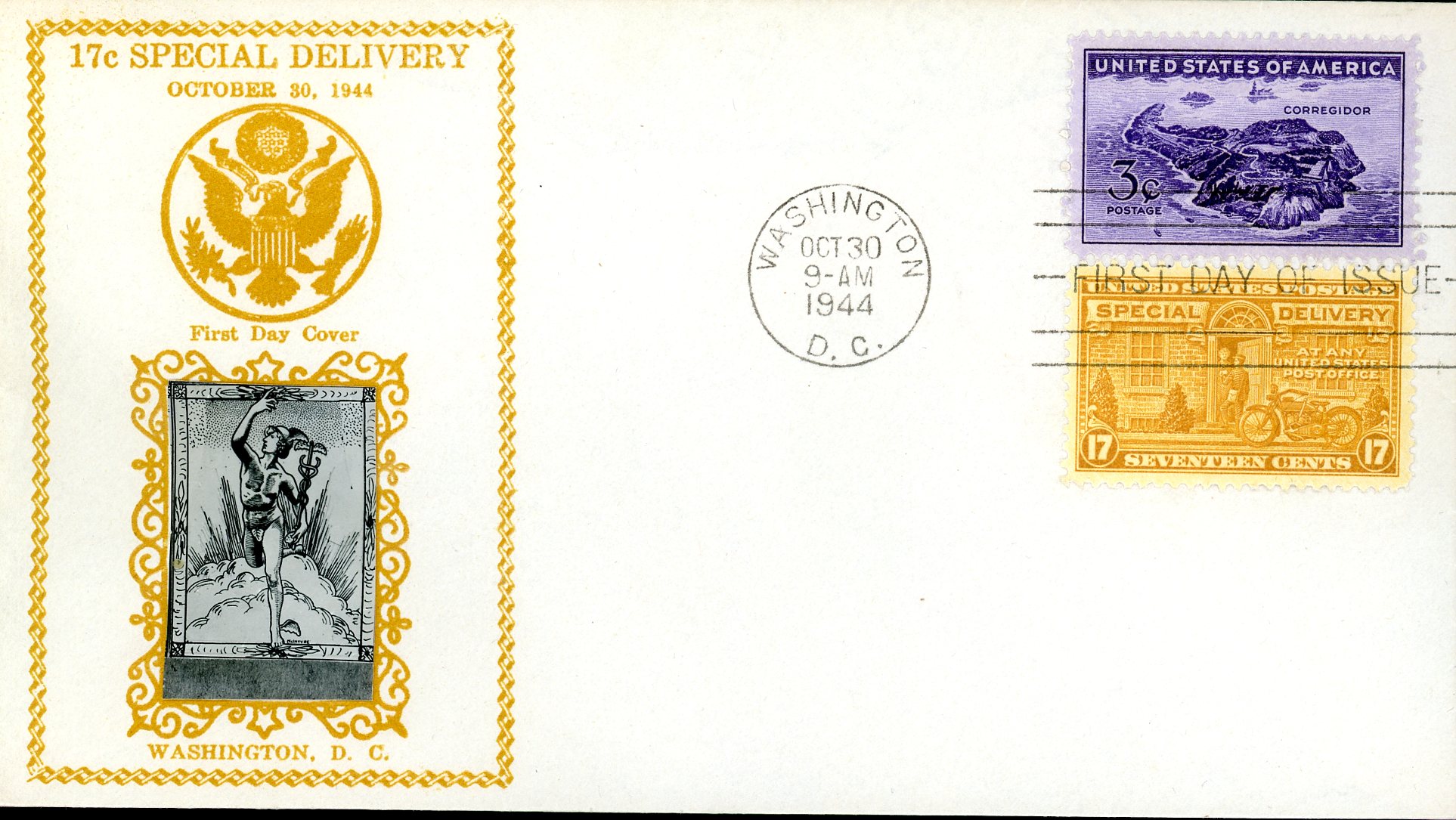 US FDC Special Delivery #E18 – Postman and Motorcycle (1944)