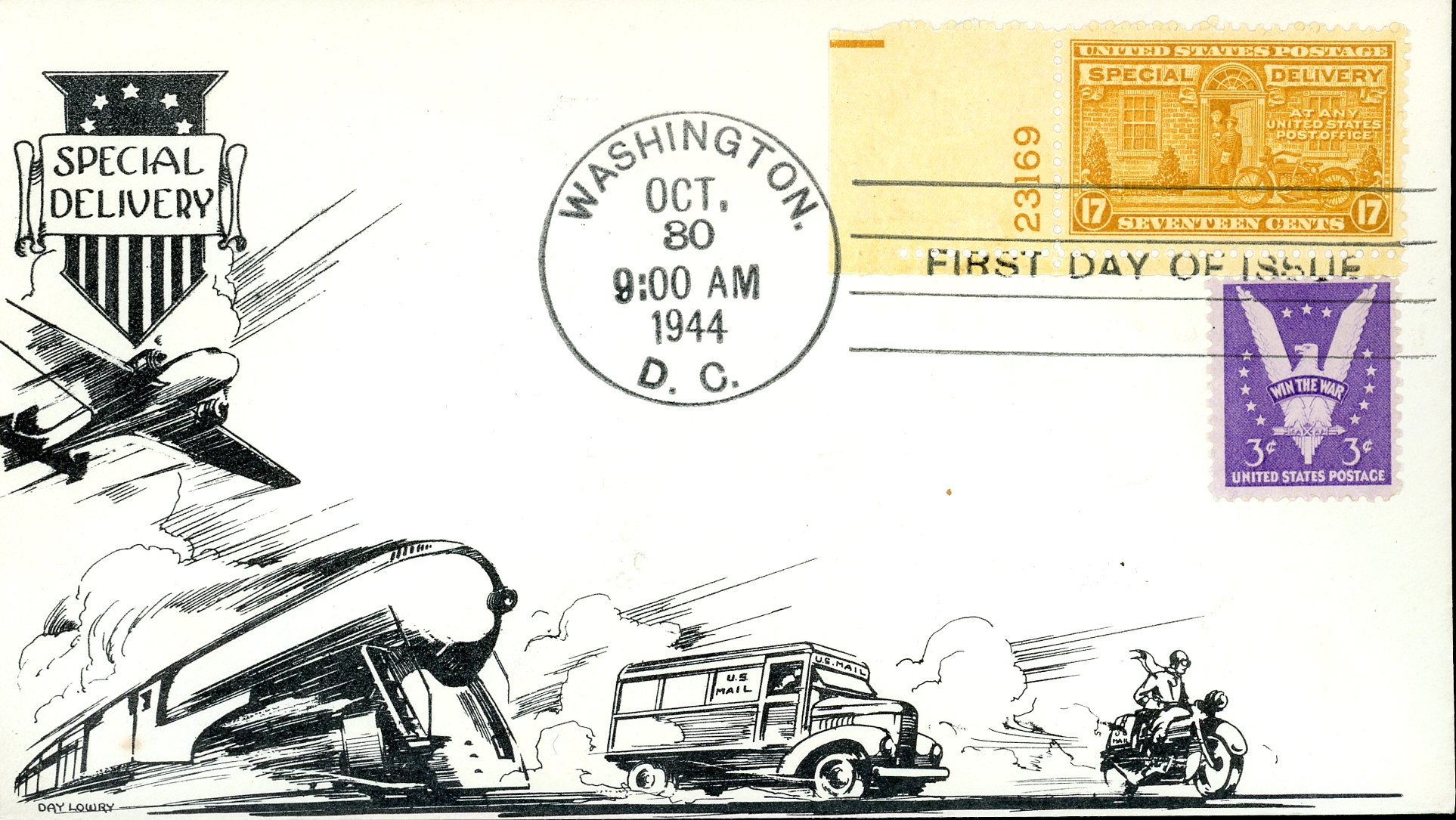 US FDC Special Delivery #E18 – Postman and Motorcycle (1944)
